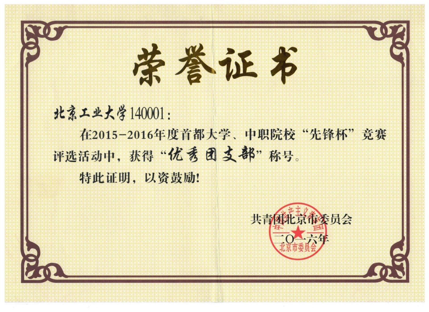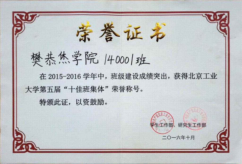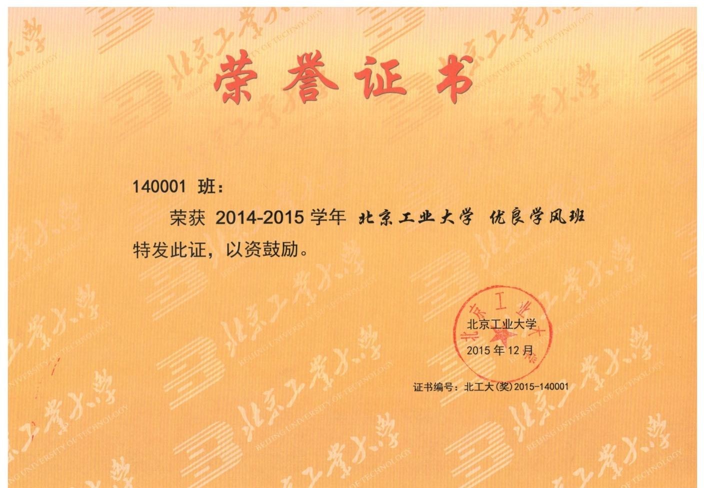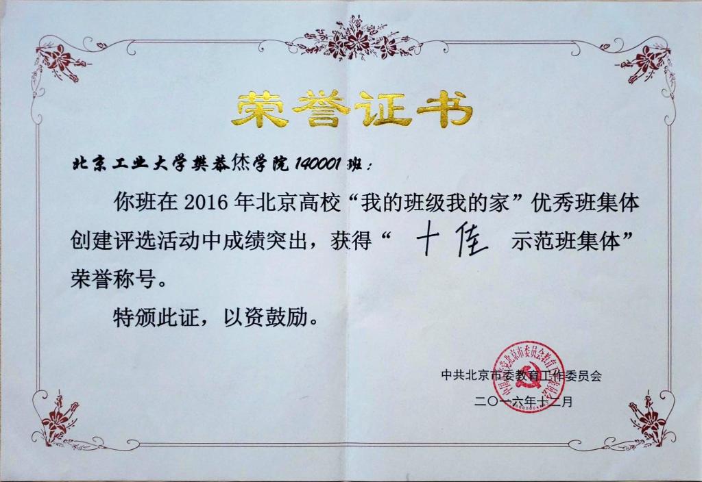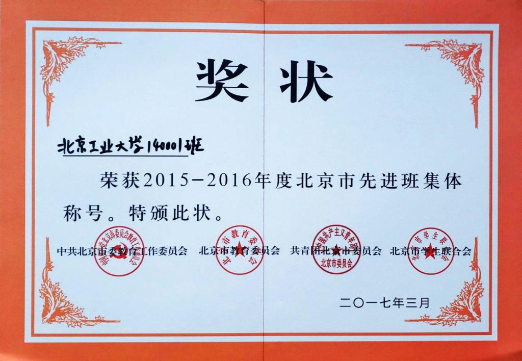 140001班 荣获 北京市先进班集体