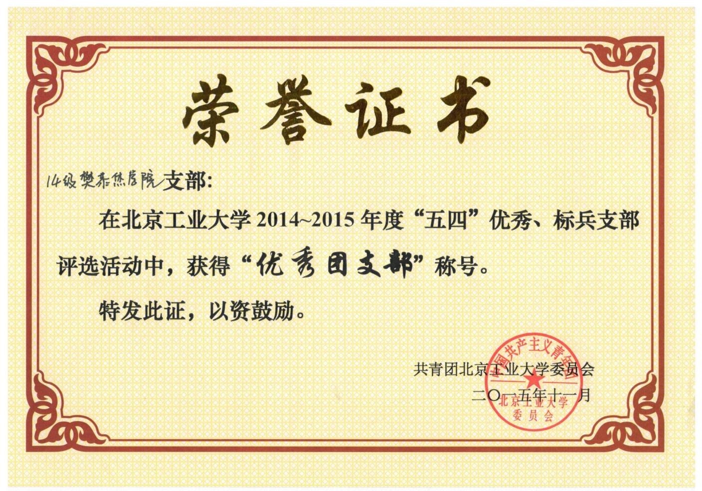 14级樊恭烋学院 荣获 五四优秀、标兵支部 优秀团支部