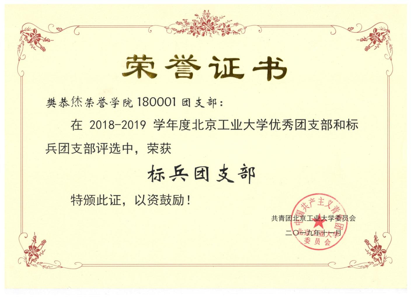 180001团支部 荣获 标兵团支部