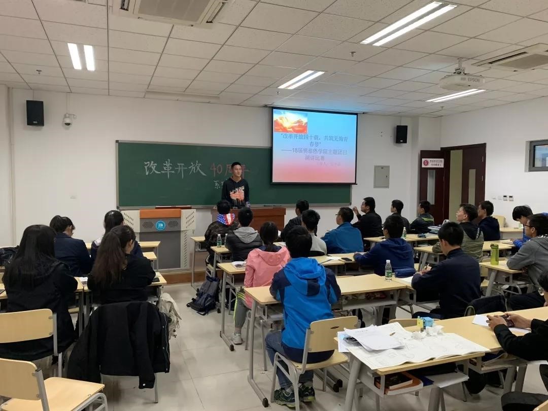 2018级180001班举行了“改革开放四十载,共筑无悔青春梦”的主题演讲比赛,多名同学通过对改革开放的理解及个人成长感受发表了演讲内容。
