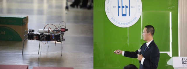 活动开始前,Cornerstone项目组的成员向到场嘉宾、老师及同学们展示海报并介绍所做工作,颁奖典礼在浓厚的学术氛围中拉开帷幕。典礼开始,郭福院长致辞向获得奖学金的同学表示祝贺,总结梳理了2014~2015学年樊恭烋学院本科生奖学金评定工作的完成情况,对提供奖学金支持的樊校长家人及北京尖峰计算机系统有限公司表示了感谢,并对2014~2015学年学院工作进行了简要回顾。在Cornerstone项目展示环节中,2014~2015学年Cornerstone项目的八个小组分别进行汇报,精彩的演示十分吸引观众眼球,评委老师及在场同学频频发问,与项目组成员展开了热烈的探讨。其中仿生六足爬行机器人、绘图机器人、智能灯光控制系统及其延展这三个项目团队分获前三名。