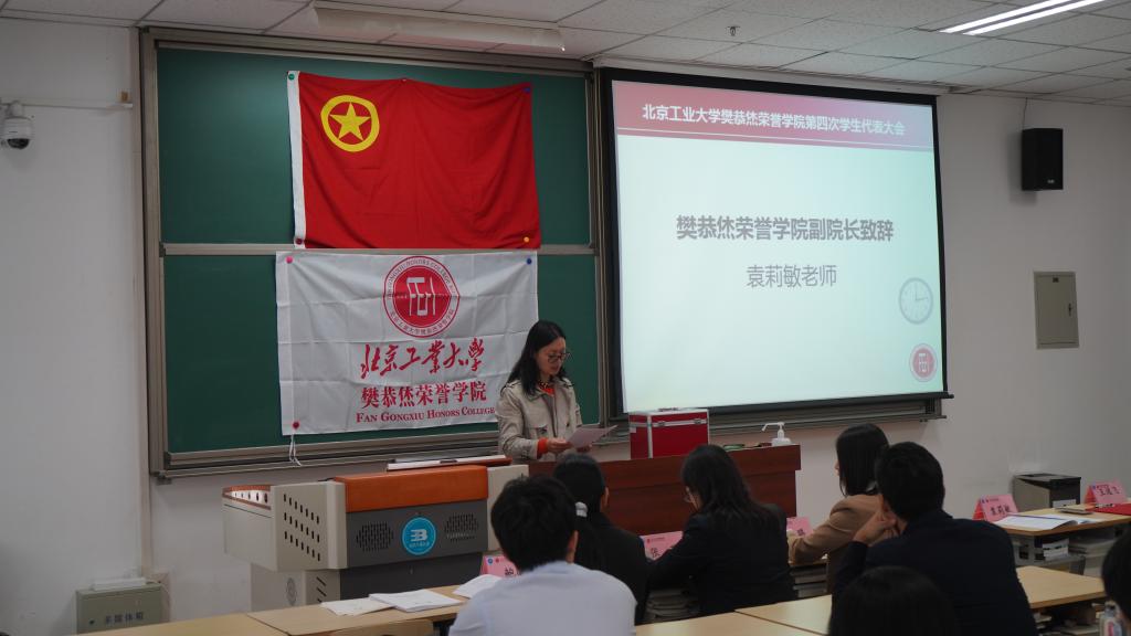 副院长袁莉敏老师进行大会致辞,她在演讲中提到,加入学生会既是新的机遇也是新的挑战,需要锐意进取、愿意团结带领团队前进的同学积极加入。随后,袁老师对下一届学生会提出了希冀,她提出学生会的领导力还需要加强,同时要做好未雨绸缪的精心计划,向加强队伍建设的目标靠拢,积极在冬奥会、志愿者等活动中组织,带领同学开展眼界。袁老师相信学生会代表一定会在北工大留下青春奋斗的足迹,贡献每个人的青春力量,不断创造辉煌。