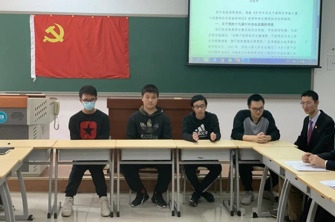 会议的第三项议程由党支部中学习强国近期积分优异的五位同学沈嘉玮、孙嘉鸿、孙敬哲、李亚欧和郝培宇介绍学习经验,分享学习心得。五位同学总结了在学习理论知识和挑战答题中的经验和方法,分享了结对学习和答题的收获,提出要把理论学习变成日常的习惯。希望在今后的理论学习中,党支部全体成员能够更上一层楼,加深理论修养,以理论指导实践,更好提升思想、凝练行动、创造价值、服务人民。