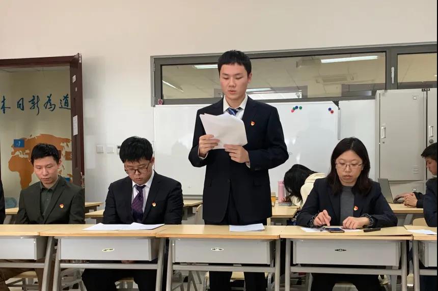 会议议程的第一项是审议2名预备党员的转正议题。李镕辰和张泽源同志分别宣读了《转正申请书》,陈述了在预备党员预备期一年中的主要学习工作情况,并结合过去一年里的实践经历,阐述了个人的思想变化,总结了个人的优缺点,表达自己加入党组织的坚定决心。