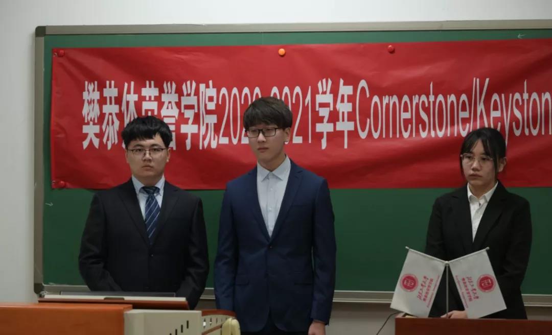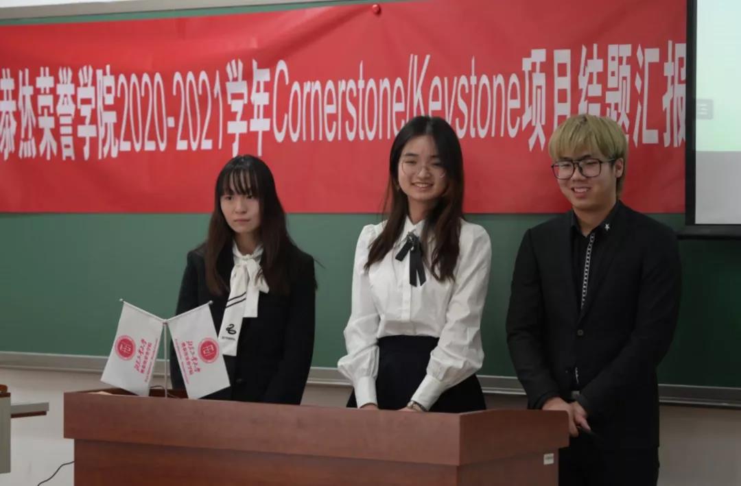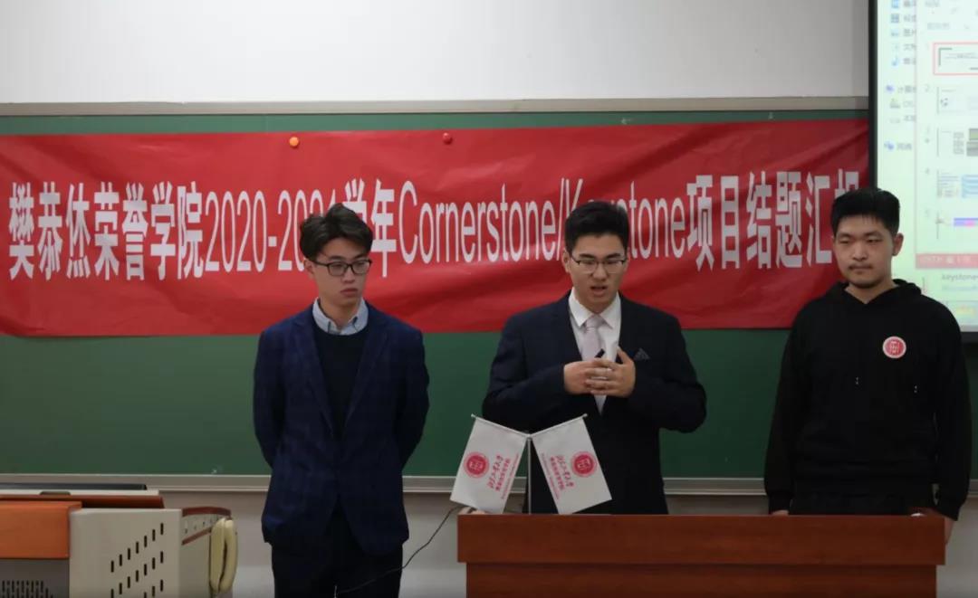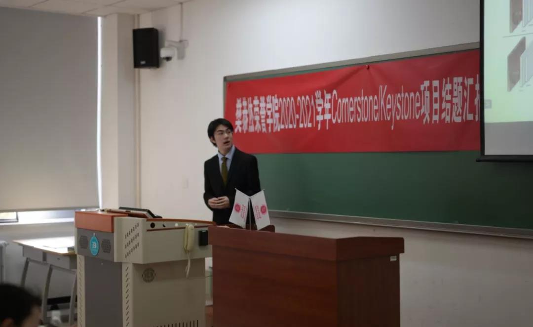 2020-2021学年Cornerstone/Keystone项目结题汇报在第四教学楼608室举行。在本次活动中,学院请到了材制学部叶红玲教授、信息学部马伟副教授、材制学部柯小行副教授、信息学部李童副教授、信息学部朱晓庆老师、信息学部郑榜贵老师、信息学部王泽老师、材制学部王心心老师 共8位来自多个学部的导师出席并担任评委进行评分。由于疫情原因,现场只有汇报人,评委导师和志愿者参与,全体2021级同学通过线上观摩了此次答辩。其中主持人由2021级张佩敏,徐梦菲,柳雨萌,齐骥四位同学担任。
