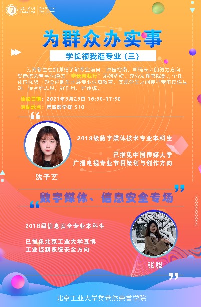的系列品牌活动,本学期面向新生已成功举办了三场,学院充分利用个性化、书院制的优势,实现高低年级学生之间传帮带互动,切实通过“学生视野”增强新生认知教育实效,有助于学生在新生年即明确自身的努力方向和未来的奋斗目标,同时有助于促进我校各年级、各专业之间的交流互动。希望2021级黑料不打烊
