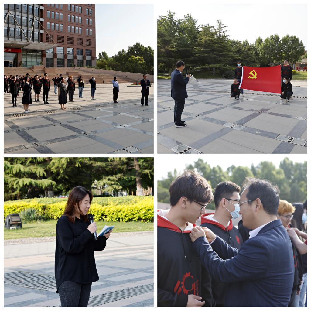 随后,在孙院长的带领下,全场师生郑重宣誓,重温入党誓词。在迎风飘扬的党旗下,由党支部的教师和学生党员为预备党员同学们佩戴党徽,嘱托他们时刻将义务和使命担在肩上,将樊恭烋学院党支部发展得更好。
