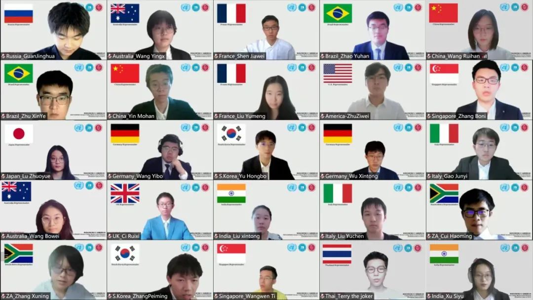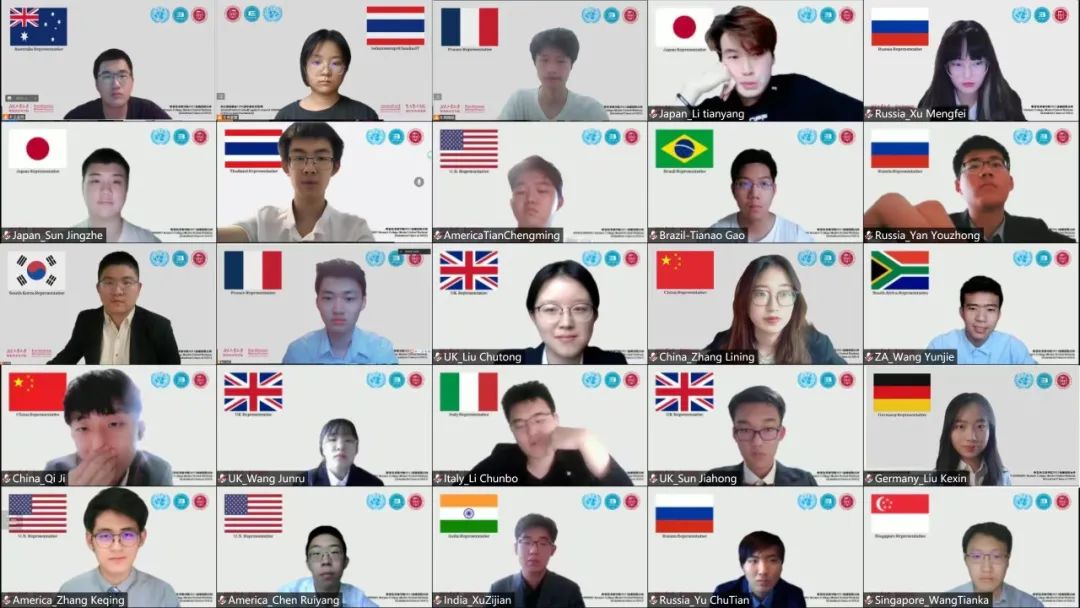 同学们在模拟联合国会议中扮演中国、美国、俄罗斯等15个国家的代表,并在大会上站在各自所在国家的立场,讨论新冠病毒疫苗的公平性、普遍性和合作问题。大会分为立场声明和核心磋商两个环节。在立场声明环节每个国家代表发言三分钟,分别针对各国国家新冠疫情情况、新冠疫情疫苗接种情况与新冠防疫政策等情况以及国家对于新冠疫苗分配问题的立场进行了说明。在核心磋商缓解,各国代表踊跃参与,动议了2次自由磋商和14次有组织的核心磋商。各国代表观点清晰、都能够有理有据地站在自己代表国家的立场客观的分析世界新冠疫苗的分配情况与分配形式。