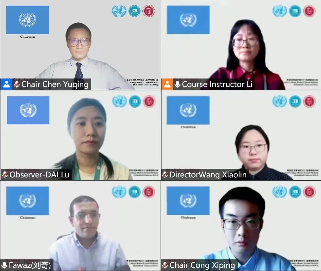 第六届国际模拟联合国大会(BJUT-FGX International Model United Nations 2022)于线上成功举办,50名樊院优秀学子相聚云端,模拟联合国议事规则,围绕全球治理热点议题进行深入探讨,提出青年方案。作为“跨文化交际”课程思政的实践教学环节,担任《高级英语》以及《综合英语》两门公共基础必修课的李晓莉老师组织我院2021级全体同学参加了这次大会。大会邀请了外教Dr.Fawaz作为评审专家,综合办公室主任戴璐老师列席,陈宇卿、丛煕平和王晓林三位高年级学长学姐作为主席团成员联席主持了本次模拟联合国大会。