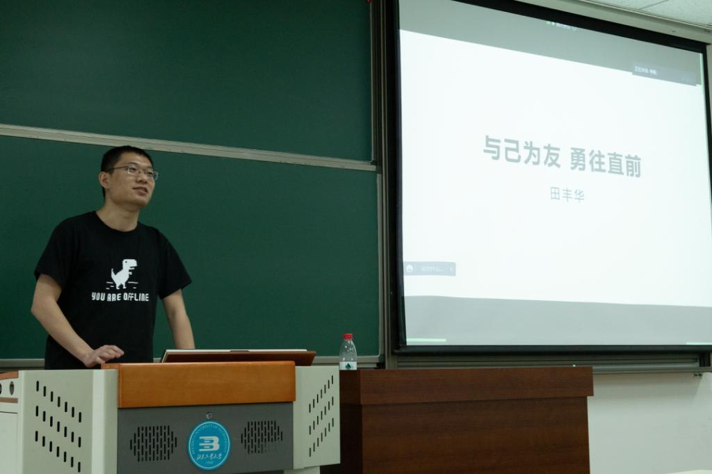李苍源学长通过讲述自己丰富的实践经历,激励同学们多多进行尝试,不断提升自己的创新实践能力,从而达到更高的学术追求和境界。之后他又通过介绍自己的专业研究方向,讲述了目前业界的瓶颈与未来发展方向,为同学们的未来指明了道路。