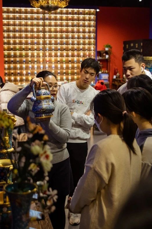 2023年12月1日,同学们来到中外珐琅美术馆,讲解老师带同学们参观了馆内的优美珐琅(景泰蓝),总体介绍了何为珐琅,珐琅的价值包括观赏价值,美术价值,文化价值等,最后详细介绍了珐琅的基本制作步骤,包括绘图,掐丝,粘丝,点蓝。老师用生动的语言将同学们带入珐琅的世界。珐琅跨越千年岁月,万里东西,终于与同学们相遇,带着历史的残韵,春风一吹,又熠熠生辉地展现着它复杂的魅力。