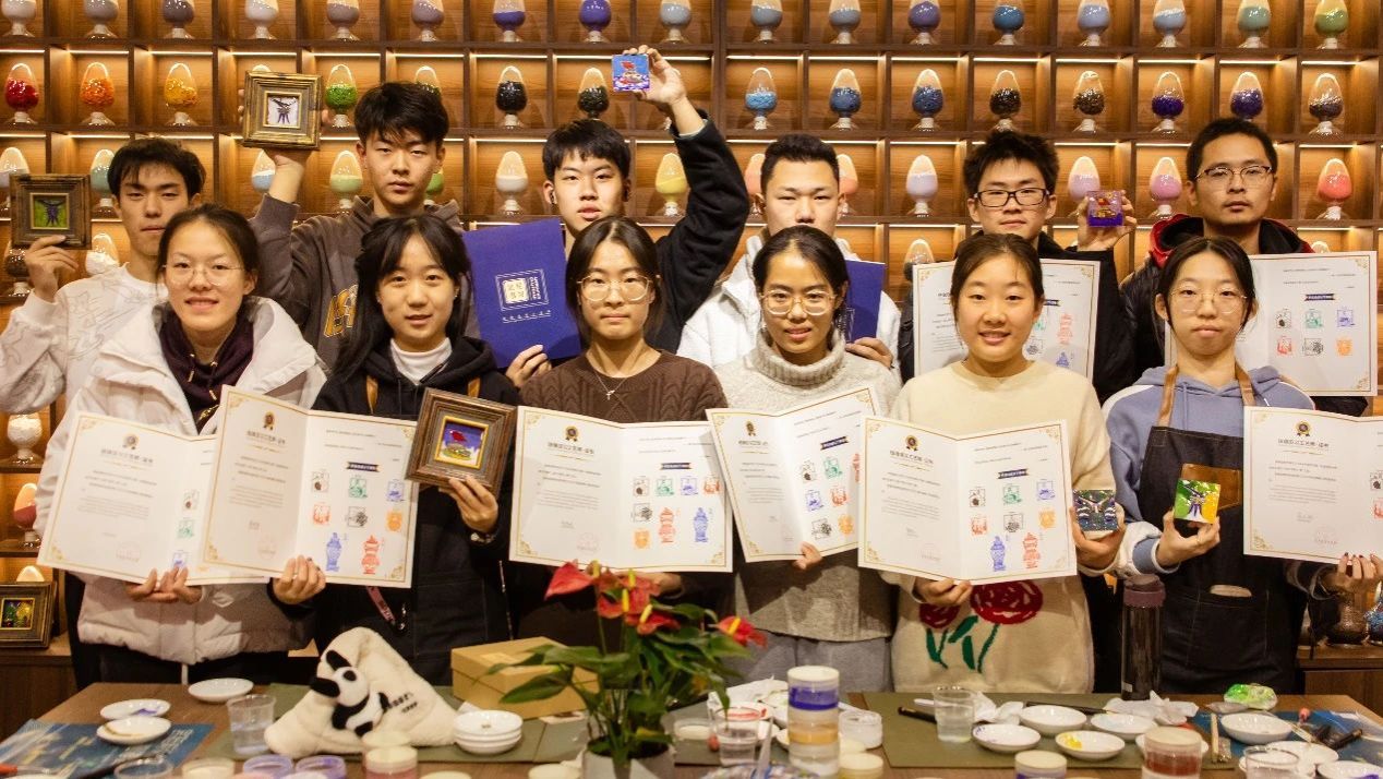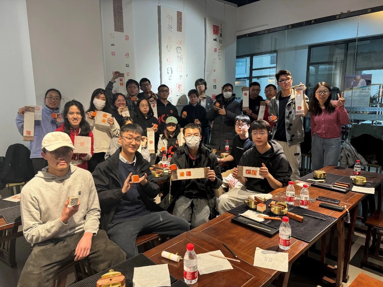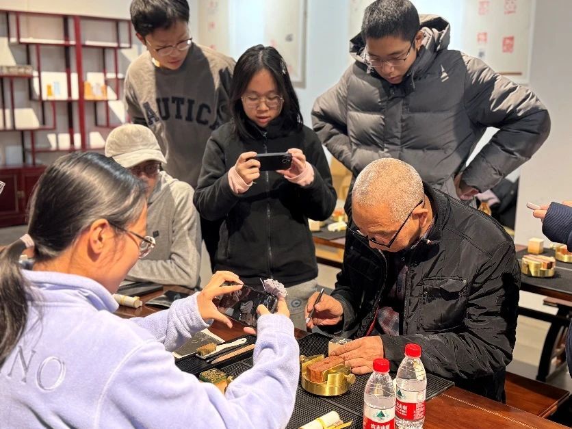 在陶瓷厚重的艺术氛围之后,同学们投身到中国篆刻这一非物质文化遗产的体验中。篆刻作为中国传统的艺术形式,不仅是一种文字的雕刻,更是一种对心灵境界的表达。在这个非遗项目中,同学们得以感受到千百年来传承下来的独特韵味。