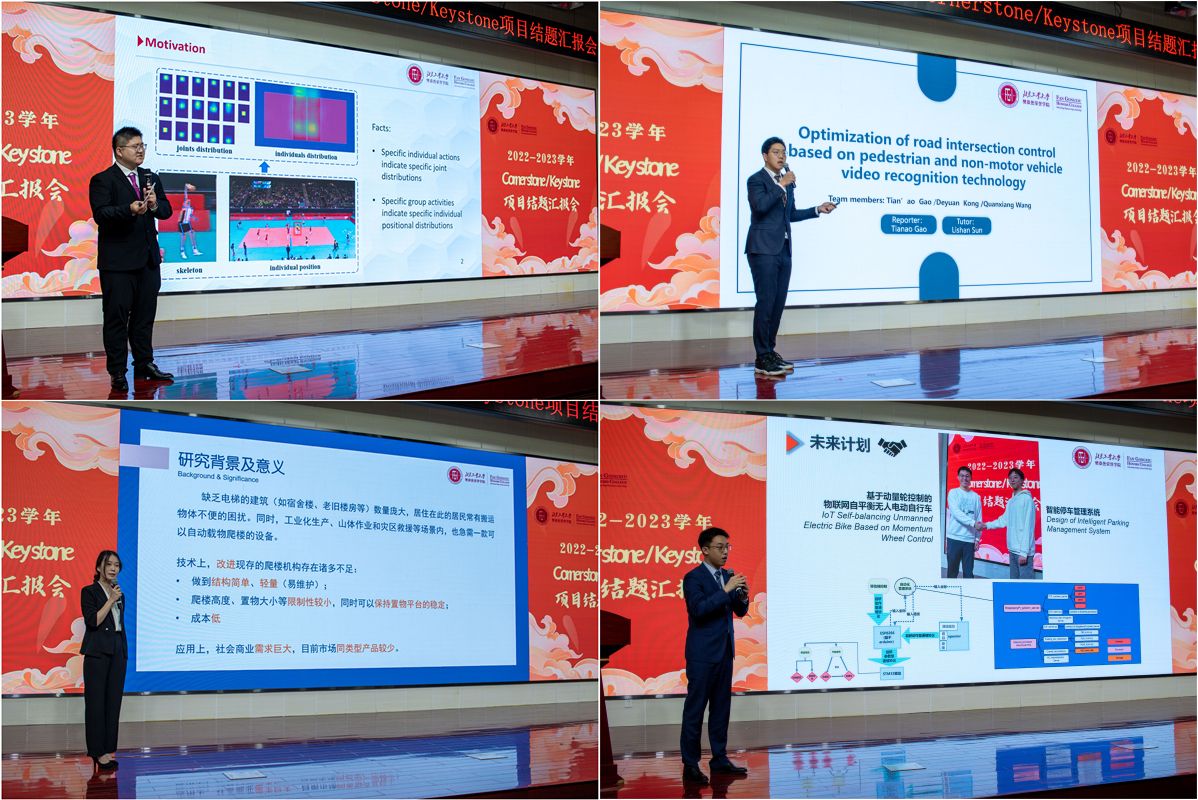 2022-2023学年,学院面向21、22级征集科研项目,选题覆盖了机械制造、计算机科学、人工智能、电子工程、信息安全、交通与城市规划、环境能源以及生物工程等多个专业领域。本次项目汇报按照2021级Keystone(14组)和2022级Cornerstone(10组)依次进行,汇报包括成果展示、评委提问、学术海报展示三个环节。与会专家老师对每个组进行了充分的点评和指导,各组汇报人也与专家进行了思维碰撞和交流。