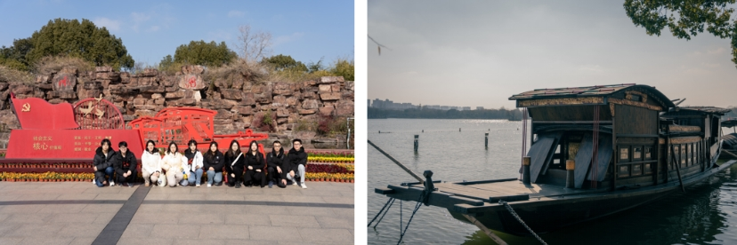 接着,师生们前往宣公祠,学习唐朝廉相陆贽的生平和思想,深受习近平总书记引用其名句的启发。之后,造访南湖湖心岛,参观一大代表曾用的红色画舫仿制品,体会历史人物的足迹。