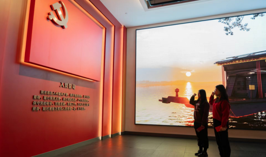 在纪念馆中,师生们深入了解了自1840年鸦片战争以来中国人民的抗争历史,体验了党的创建和发展的历程,在宣誓墙前重温入党宣言,坚定了政治信仰。