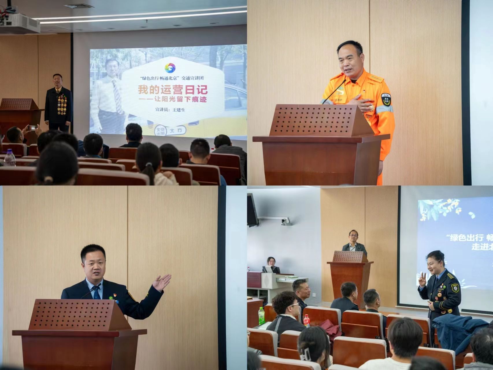 之后是北京市人大代表、全国五一劳动奖章获得者、全国交通技术能手、北方出租汽车公司出租车驾驶员王建生同志。他以自己二十多年的驾驶经验总结了高效节能驾驶的方法,并且通过参与重大事件的交通保障工作,积极为国家大型活动做出贡献。他的故事不仅体现了一名优秀驾驶员的精湛技术和服务精神,还反映了他极高的社会责任感和职业荣誉感。