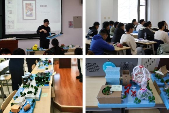 在点评环节中,金老师结合实际,从设计理念、空间分布到整体结构,为每一组作品提供了专业且生动的反馈。他幽默风趣的点评风格引发阵阵笑声,也让同学们在轻松愉快的氛围中获取了宝贵的设计建议。通过彼此的分享与互动,同学们在交流中碰撞灵感,共同进步。