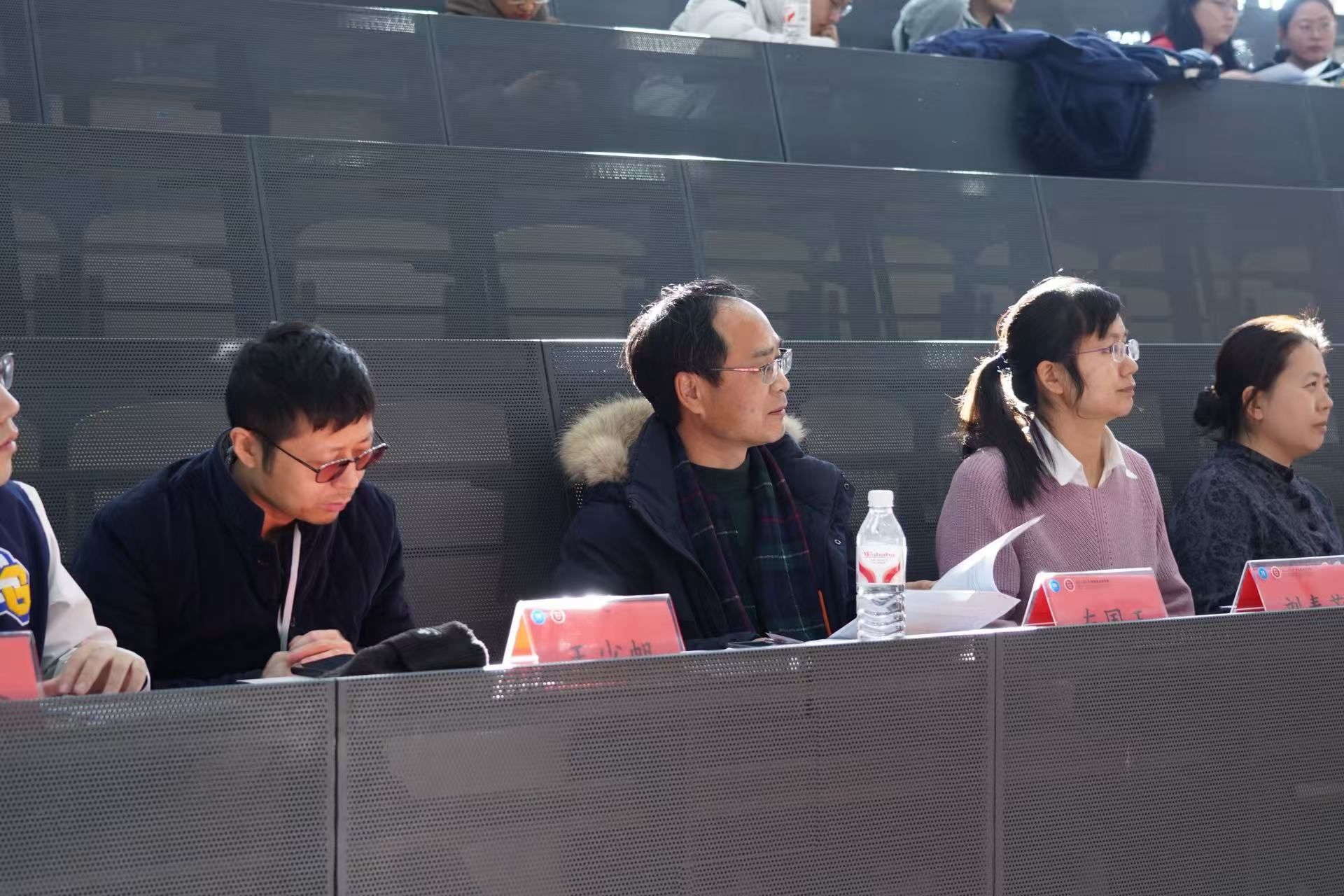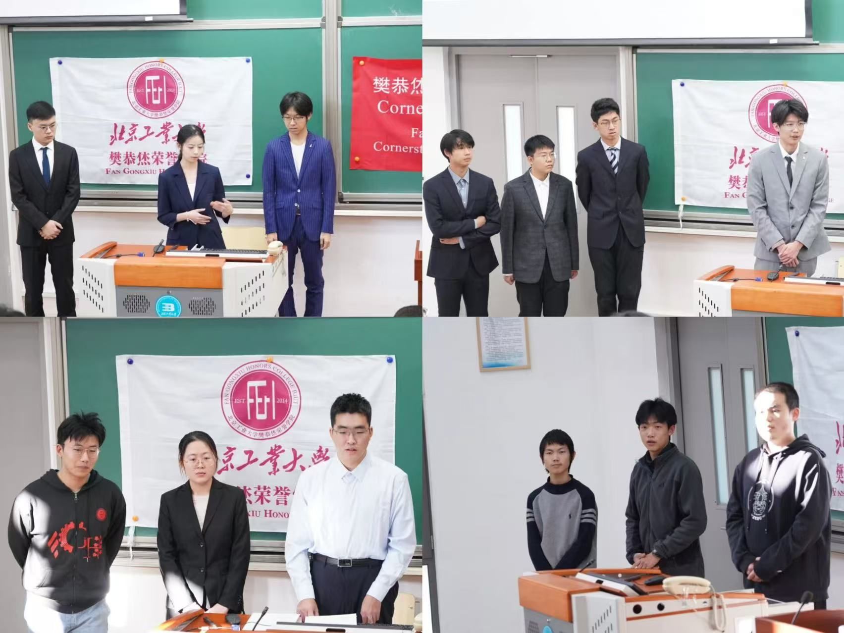 院长李洪义教授、副院长袁莉敏、陈春跃老师,以及综合事务办戴璐老师。本次汇报会学院邀请了电子信息工程专业校友王睿涵、数字媒体技术专业庞子烁电子科学技术专业李定坤以及计算机科学技术专业周琮林、晏子尧共同参与。学院2024级、2025级全体同学听取了汇报会。