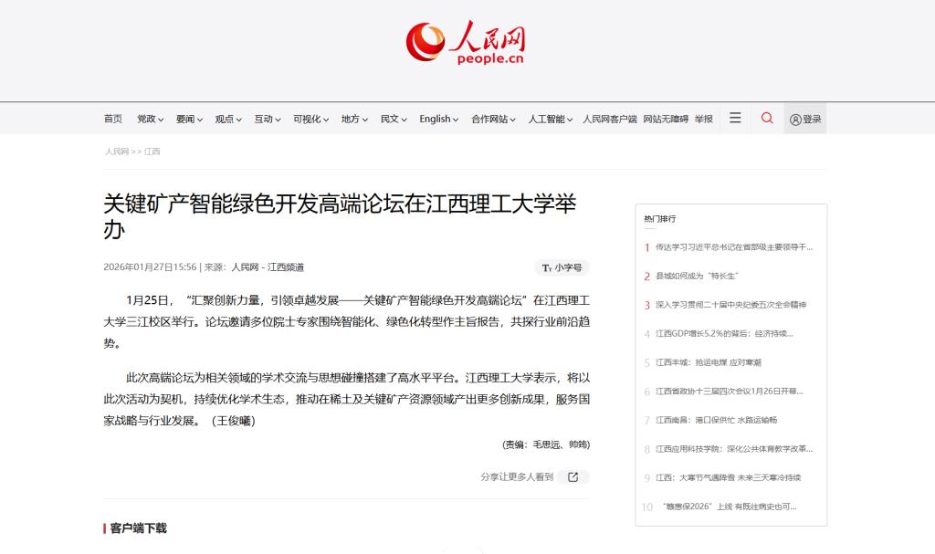 此次高端论坛为相关领域的学术交流与思想碰撞搭建了高水平平台。江西理工大学表示,将以此次活动为契机,持续优化学术生态,推动在稀土及关键矿产资源领域产出更多创新成果,服务国家战略与行业发展。(王俊曦)