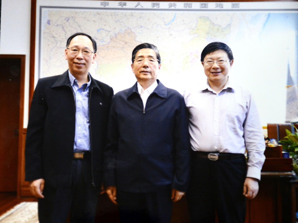 全国人大常委会原副委员长丁石孙(左一)视察学校并受聘为兼职教授 |